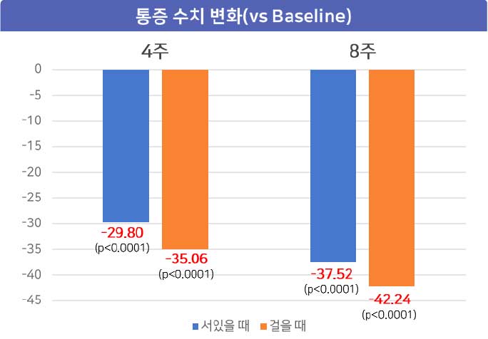 - VAS 통증 지표 변화 (체중 부하, 걸을 때 통증)