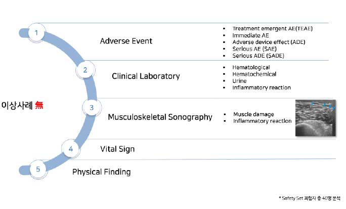 - 안전성 평가 : 1회 시술 후 24주까지 평가